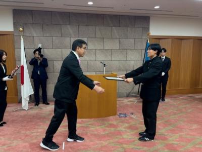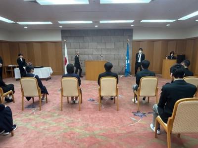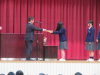 この賞は本校を含め五つの団体に授与されました。 表彰式では、執行部の生徒が緊張しながらも