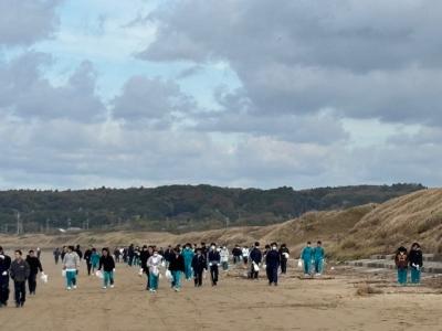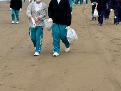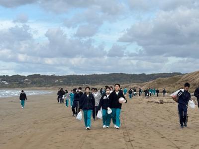 隣接する釜屋海岸の清掃ボランティア(あと校舎内落ち葉拾いも)を実施しました。