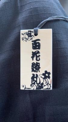 テーマである「百花繚乱」の文字を写しました。木札を身に着け、自分が羽工祭を