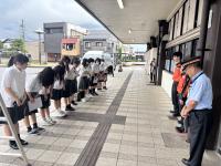 先日、JRの職員の方々と一緒に、駅の入口の採寸を行いました。生徒たちは、羽咋の顔としてふさ