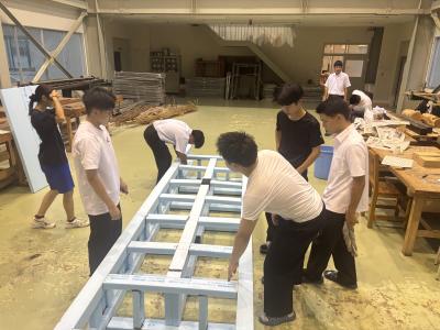 研修、生成AIを用いた羽工祭に向けてのプレゼンテーション、奉燈設計・制作、400枚の木札加工等、