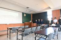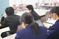 発表の練習をしています。先輩方や顧問からアドバイスが飛びます。