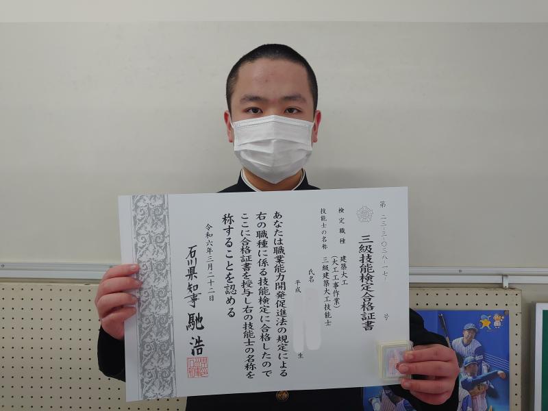 2月に受検した技能検定に合格し、三級建築大工技能士を取得しました!!