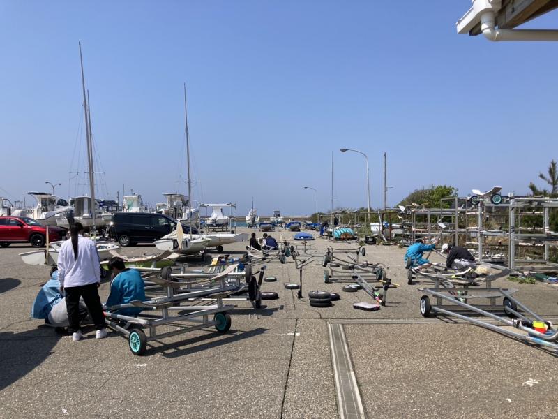 4/26(土)今日は風が強いため、部員全員で艇庫内の大改造を実施しました。目的は、一緒に艇庫を利用者している金沢大生と金沢医科大生、私たちの羽咋工業所有艇とお借りしている県連・市協艇を、皆が気持ちよく整理しやすい環境にしたいと考えました。
