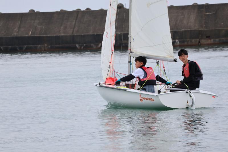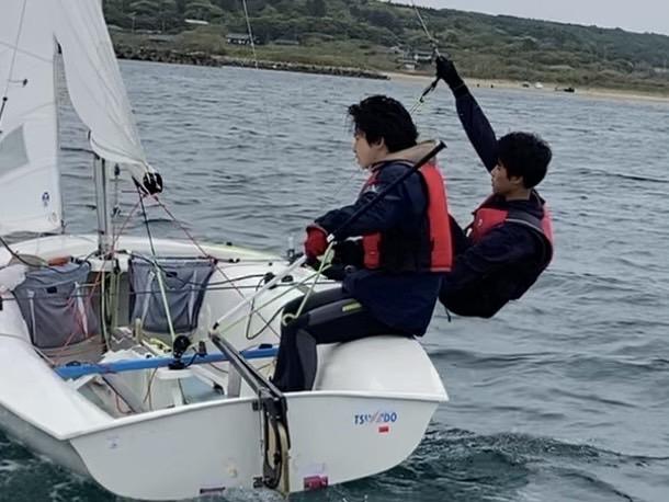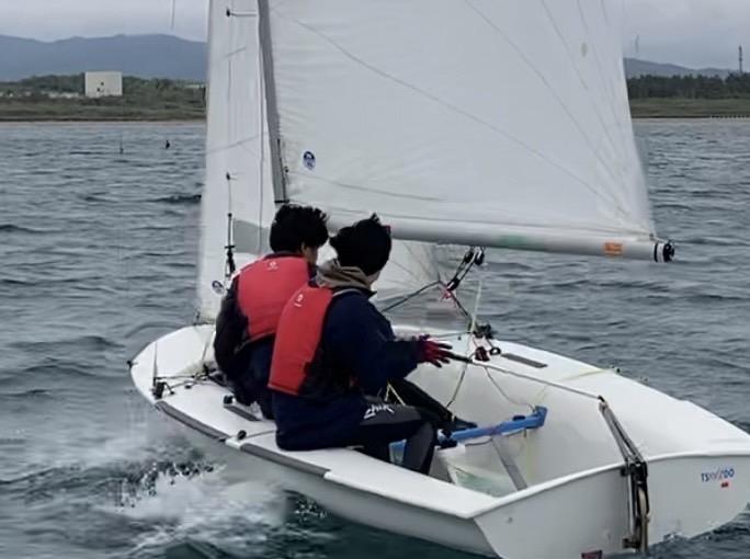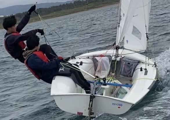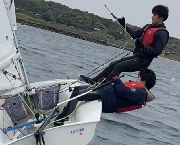 写真①2艇でセーリングを楽しむ、左なおゆき、右なぎと(共に3年)