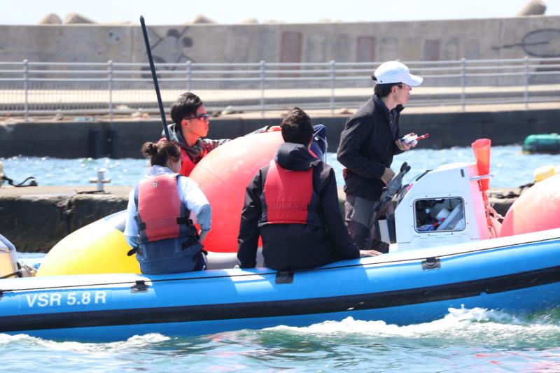 写真③マーク(赤い浮遊物)も自分達でヨットで海上に持ち込み設置していました。