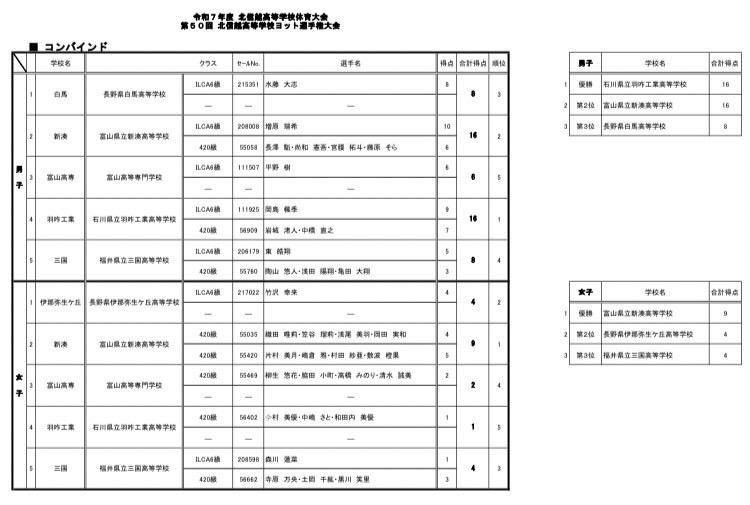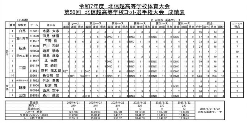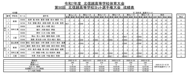 北信越高校ヨット選手権 兼 全国高校総体予選会 結果