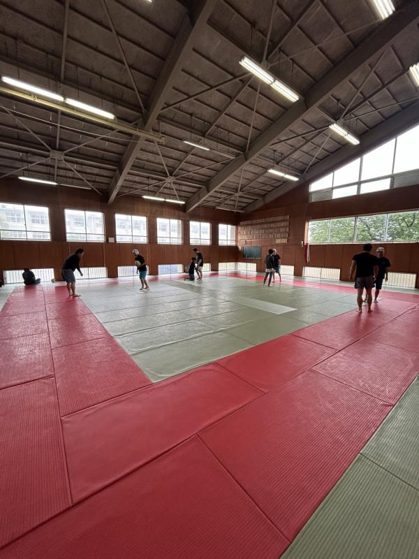 あいにくの雨でしたが、柔道場でコンタクト練習1時間30分、体育館でボール練習1時間行いました。