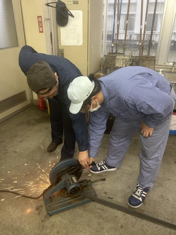 顧問の文後も坂下先生に習いながら初めて溶接してみました。