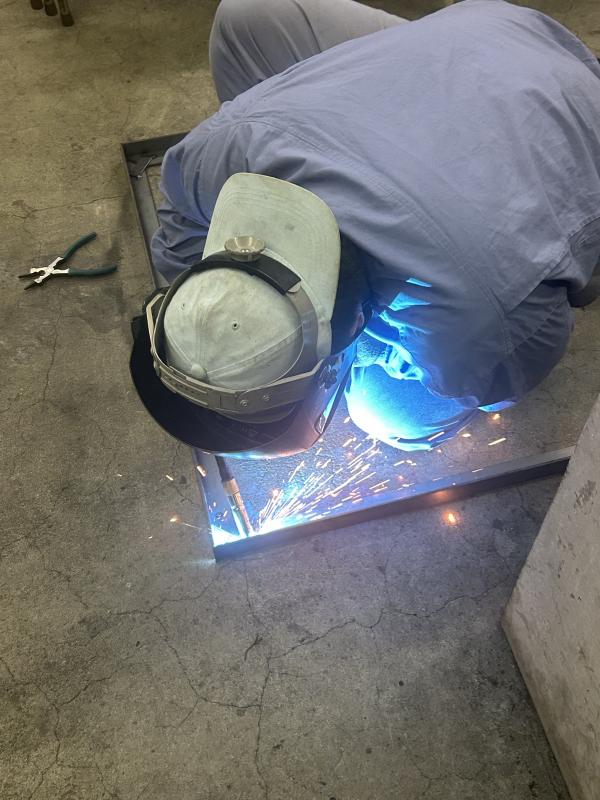 半日は部品の切り出しを行い、四隅の仮止めと溶接を行いました。