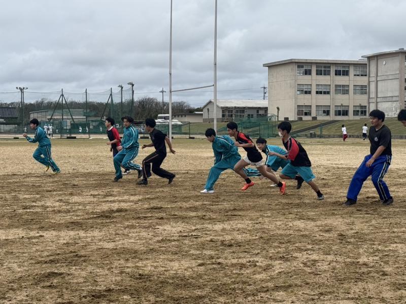 仕事現場で働く力や判断力が育つのがラグビーフットボールです 競技力だけを追い求めるのではなく、ラグビーという競技通して、仲間を思う大切さや生きていくうえで大切な能力を磨くことを意識しています。 ラグビー部に入って自分を成長させ、より良い自分で巣立っていって欲しいと思います。 他の部活から転部してくる生徒も多くいます。ぜひ一度ラグビー部へ。 | ||||||