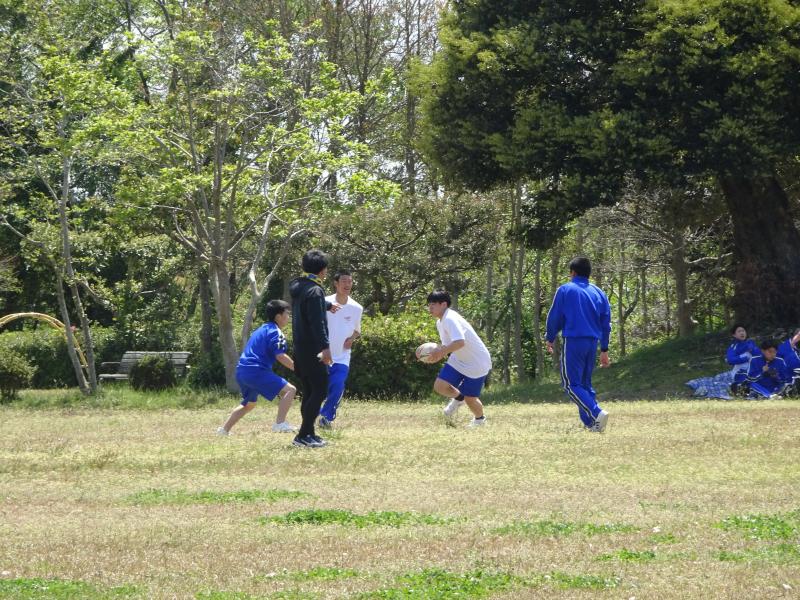 なんと1・2年生は遠足でラグビーをして楽しんでいました。