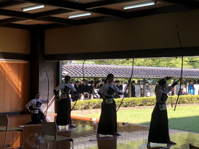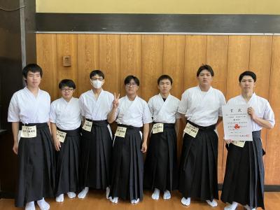 男子団体は予選では23チーム中5位、準決勝では13チーム中5位で決勝リーグに進みました。決勝リーグでは1章3敗で4位に入賞することが出来ました。準決勝・決勝では4名のうち3名の1年生が活躍してくれました。1年生は4月から弓道を始めましたが、熱心に練習に励み、めきめきと力をつけてくれました。また、個人4位に入賞した今井君は個人戦に出場した250名の中から予選、準決勝と勝ち進み、決勝では3位ー5位決定戦で4位に入賞しました。今井君は11月14日、新潟県上越市で行われた北信越新人大会に出場し、予選を勝ち抜いて準決勝まで進みました。
