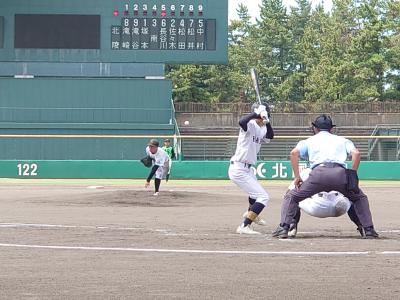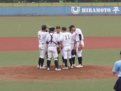 ゲッツー4回で流れを潰し、なかなか得点できませんでしたが、最後は畠中(2年)の3塁打で得点できました。