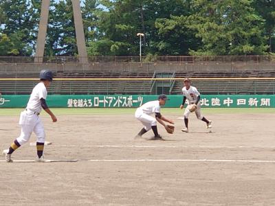 7月14日(日)金沢市民野球場にて、シード校の金沢学院大学附属高校と試合を行いました。