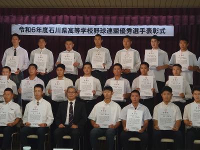 今年度の石川県高等学校野球連盟優秀選手に羽咋工業の竹内謙介(3年)が選ばれ、表彰されました。
