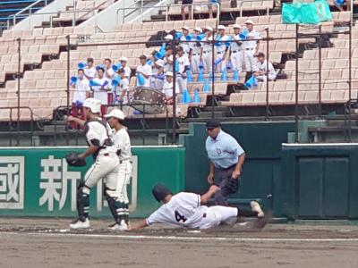 シード校の壁は厚く、なかなかチャンスを作ることはできませんでしたが、竹内大介選手(3年)の2塁打で得点することができました。