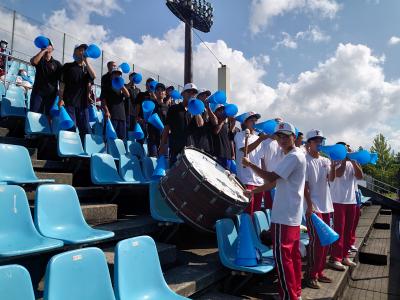 今日は朝から学校で練習をした後、金沢市民野球場で鹿西高校の応援をしました!