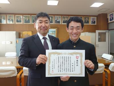 能登地区の優秀選手に羽咋工業の山田優太郎(3年)が選ばれ、高野連副会長の本校 中越校長から表彰状が手渡されました。