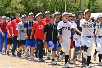 本校野球部は全員で声を出し、1番元気を出して入場行進をしました。
