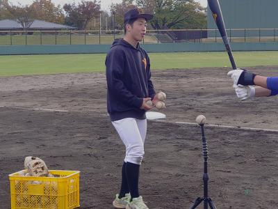 11月11日(土)、弁慶スタジアムにて行われた中学3年生対象高校野球塾に、今年の優秀選手に選ばれた平田昌大(3年)が補助員として参加しました。