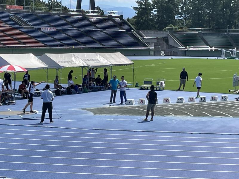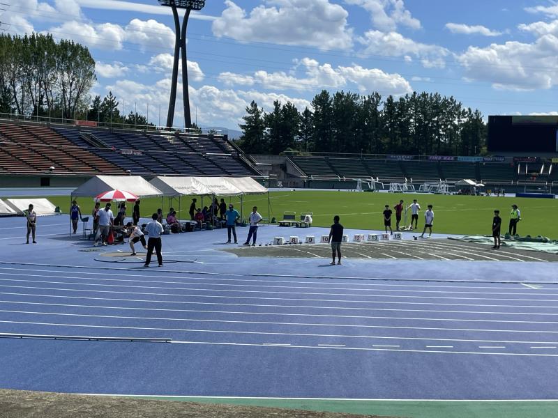 9月18日(木)から20日(土)まで西部緑地公園陸上競技場にて、トラック競技5競技、フィールド競技4競技の計9競技に参加しました。1日目は雷雨となり試合が中断となり、選手のコンディション管理能力が試される試合でした。