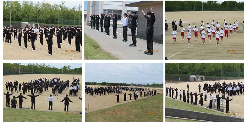 密を避けるために、各科・学年ごとに、運動場でお互いの距離を保ちながら実施しました。練習最終日は全学年での練習を行いました。5月14日に行われる壮行式では羽工生らしい大きな声の校歌・応援歌が運動場に響き渡ることを期待しています。