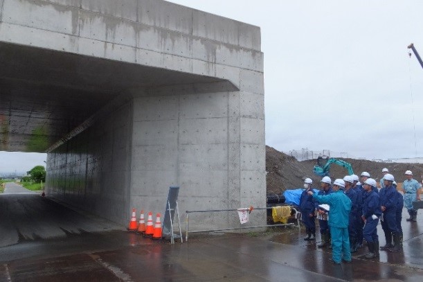 加賀地区道路橋脚工事現場 ICT建設機械道路拡幅現場見学