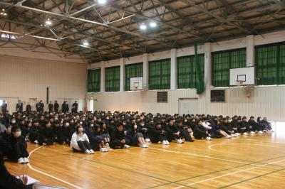 2025年12月24日 11時00分令和7年12月23日(火) 冬の快晴で気温が低く、底冷えの体育館で2学期終業式を迎えました。