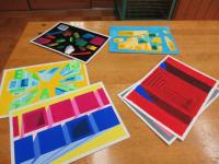 3年 美術 立体図形の作品制作の完成に向けて、色塗り等に取り組んでいます。