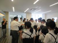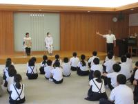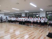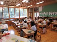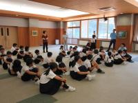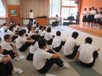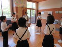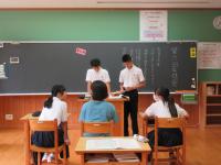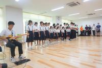 <小中学校> 本日で1学期が終了しました。終業式の前には、夏休みに行われる輪島中との交流で歌う校歌等の練習をしました。離任する職員へ子供たちからメッセージやお花の贈呈も行いました。
