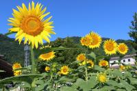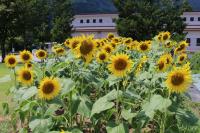 「福島ひまわり里親プロジェクト」 花が咲き揃いました。実の部分が大きくふくらんできたものもあります。