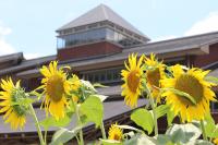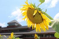 「福島ひまわり里親プロジェクト」 5月に種をまいたヒマワリの花がとうとう咲きました。夏休みに入ると同時に咲き出しました。まだつぼみがたくさんあるのでこれからが楽しみです。