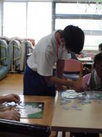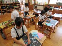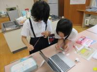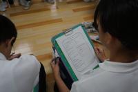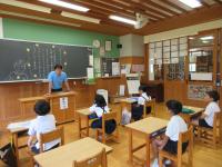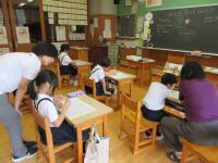 1・2年生 夏休みに取り組んだ課題を確かめています。