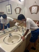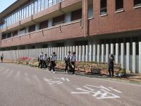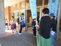 「グッドマナー・キャンペーン」2学期のスタートにあたって、育友会があいさつ運動をおこなっています。夏休みを終えて日焼けした児童生徒が元気に登校してきました。