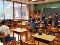<中学校> 今日は1回目の全校登校日です。課題点検をしたり夏休みの思い出話に花を咲かせたりしています。