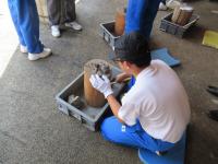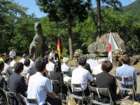<中学校> 今日は午前中に白峰でライン祭が開催され、中学1年生が参加しました。ライン博士顕彰碑前で式典に参列し、その後白山恐竜パーク白峰で講演を聞き、化石調査体験をさせていただきました。