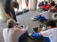 「応援練習」 運動会に向けて応援練習が始まりました。紅団・白団に分かれ6年生が中心となって手拍子やかけ声を練習します。