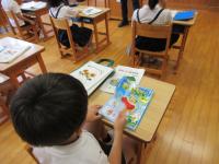 1年 英語 「When」、「Where」、「How」等の元気な声が飛び交い、疑問詞の復習をしています。