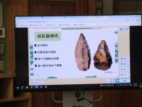 1年生 社会 石器を使用していた生活の様子について先生とやりとりしながら、縄文時代について学習しています。
