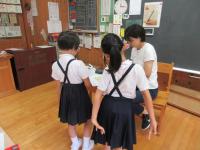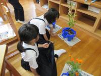 3年 理科 花が咲き終わると植物はどのように変化するのか観察しています。