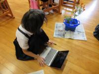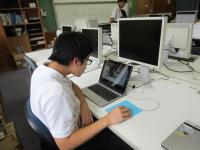 2年 技術 運動会のオリジナルポスターをパソコンを使って作成しています。
