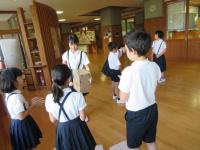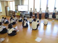 「平和集会」 図書委員が「トットちゃんの15つぶのだいず」を読み聞かせしました。折り鶴をみんなで折りました。