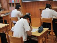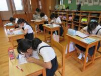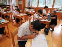 始業式後、各教室で夏休みのふり返りをし、2限から6限まではテストで夏休みの学習の成果を発揮しました。
