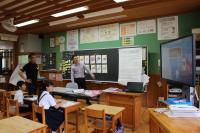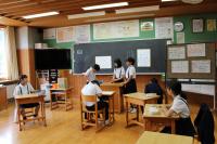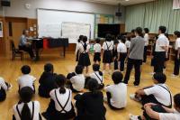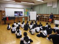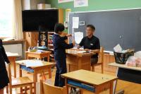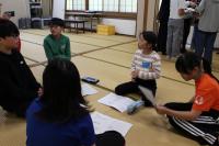 5年 白山麓の4小学校で行う5年生対象の合宿について話し合っています。どんな仕事をすればよいのか、経験者の6年生に聞きに行きました。