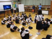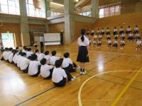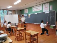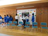 6年生 学活 中学生の部活動公式戦の激励会で披露する、小学生の応援団のパフォーマンス練習について話し合っています。