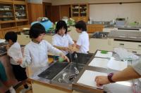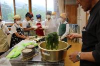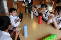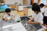 5・6年生 家庭科 調理実習です。5年生はご飯を炊いておにぎり作り。6年生は生ワカメをゆでて色の変化を確かめています。