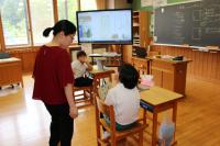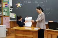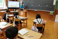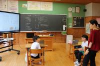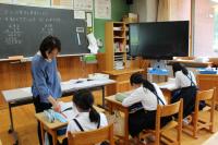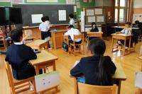 5年 外国語 リスニングの問題の答えを確かめています。
