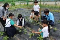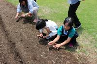 2年生 生活科 ヒマワリの種をまきました。畑の作物の観察もしています。