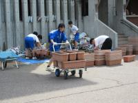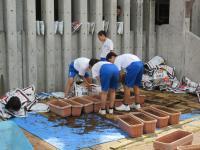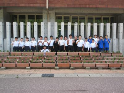 技術科 中学2年生が協力して、苗植えのためのプランター作りに汗を流しました。